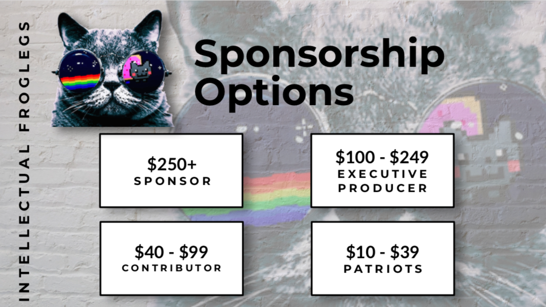 IF you prefer to donate by cash or check, make your check payable to ‘Intellectual Froglegs' or 'JoeDanMedia’ and mail to: